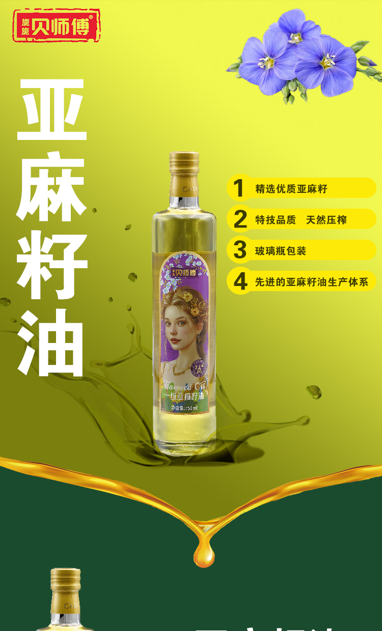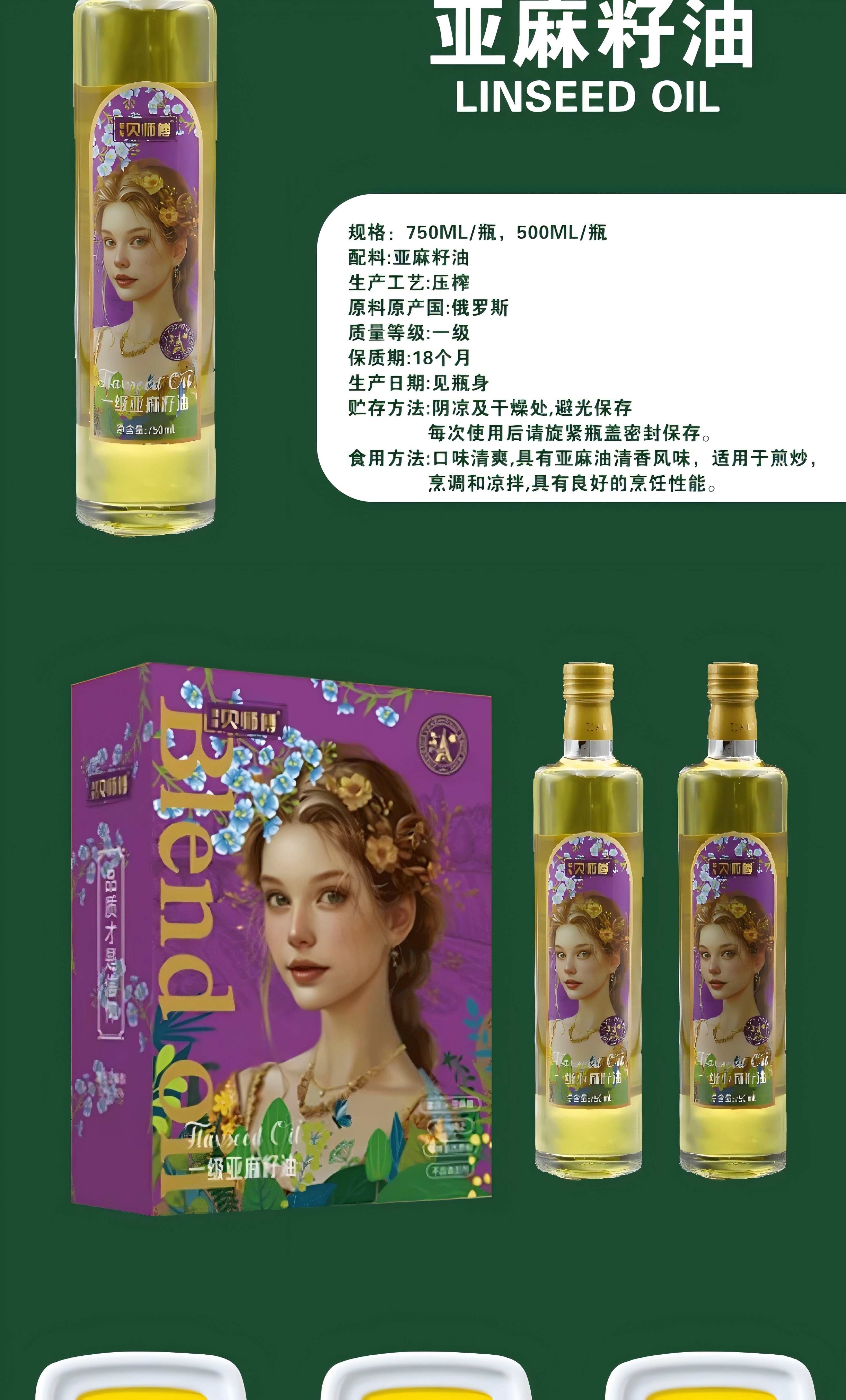 代发贝师傅一级冷榨亚麻籽油礼盒500ml/瓶*2瓶 俄罗斯进口原油